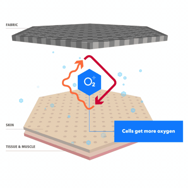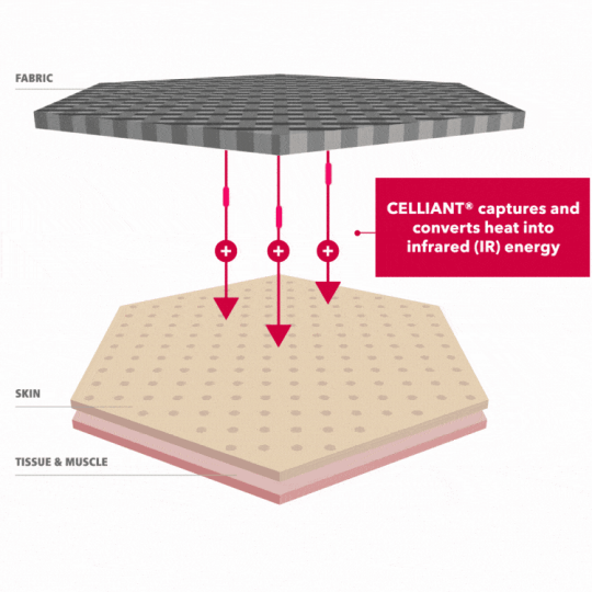 Celliant® 全光谱红外技术,将身体的热量转化为全光谱红外能量,促进局部循环和细胞氧合,同时让皮肤保持干燥和完美的温度。选手在运动中将获得更多的能量、耐力、力量,提高运动舒适感,运动后更快的恢复和更好的睡眠。
